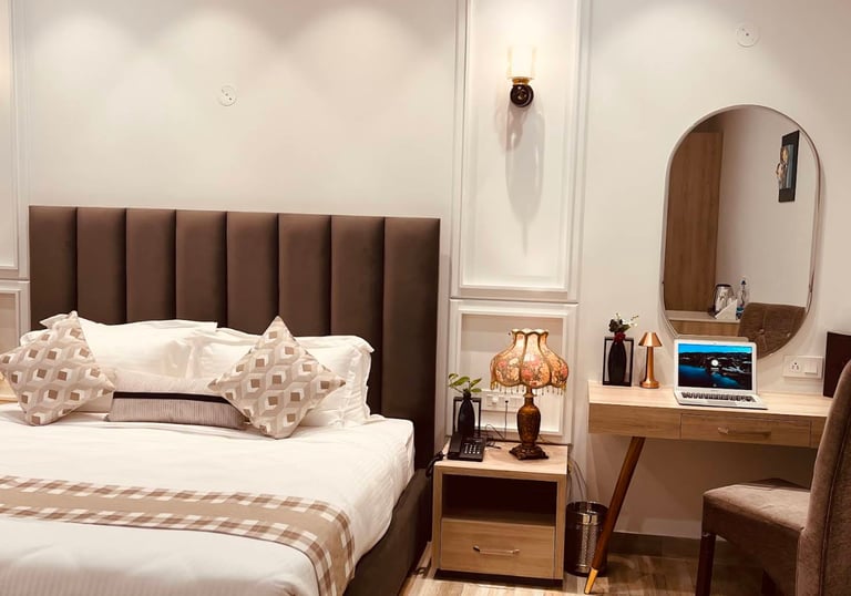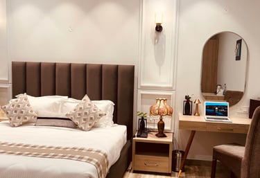 Spacious rooms with premium bedding and smart workspaces for your comfort.