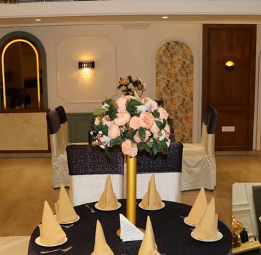 Celebrate your big day in our grand hall with exquisite décor.